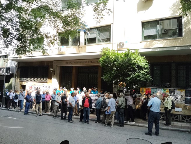 Οι συνάδελφοι μας συνταξιούχοι βρέθηκαν στα κεντρικά γραφεία του ΕΦΚΑ αρχικά ώστε με την παρουσία τους να αποτρέψουν τη διαδικασία κατάθεσης των προσφορών ενώ στη συνέχεια κινήθηκαν στα γραφεία του ΕΦΚΑ προκειμένου να εμποδίσουν συμβολικά την αποσφράγιση των προσφορών.